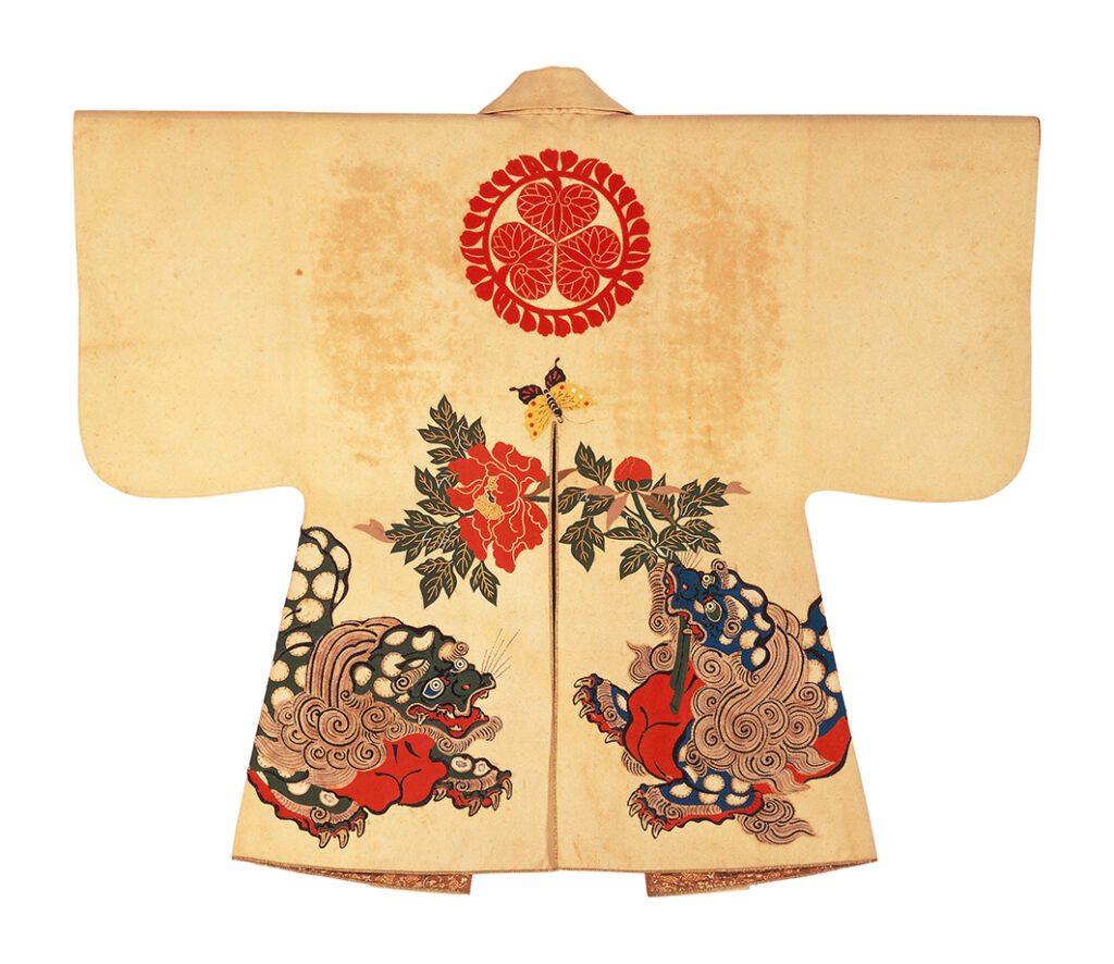 白羅紗地葵紋付唐獅子牡丹文火事羽織